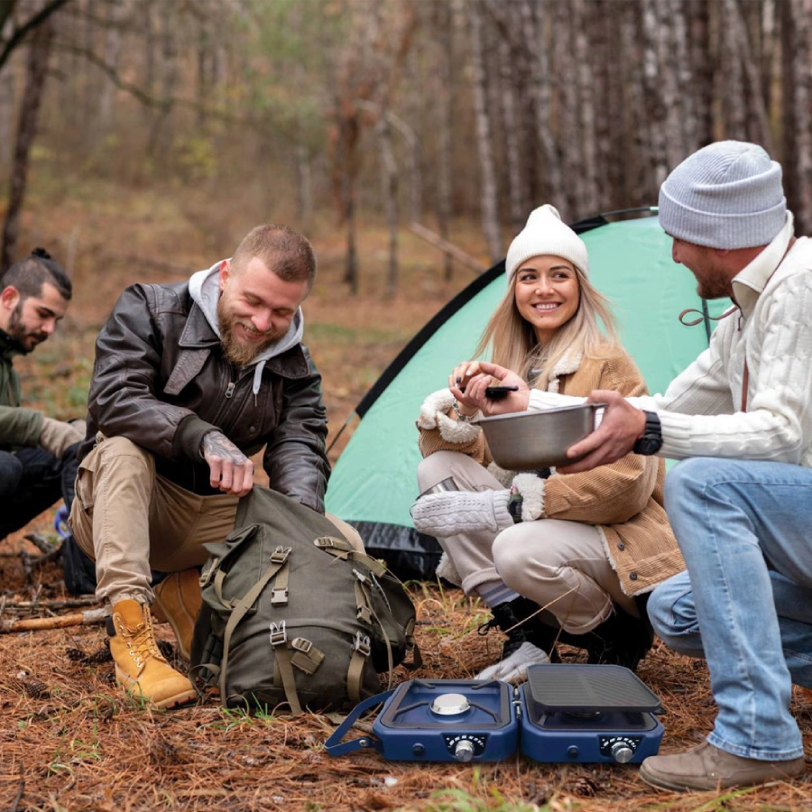 یک اجاق سه‌شعله‌ی جمع‌وجور و قابل حمله که برای پخت‌وپز در سفر، کمپینگ یا حتی استفاده در خانه طراحی شده.