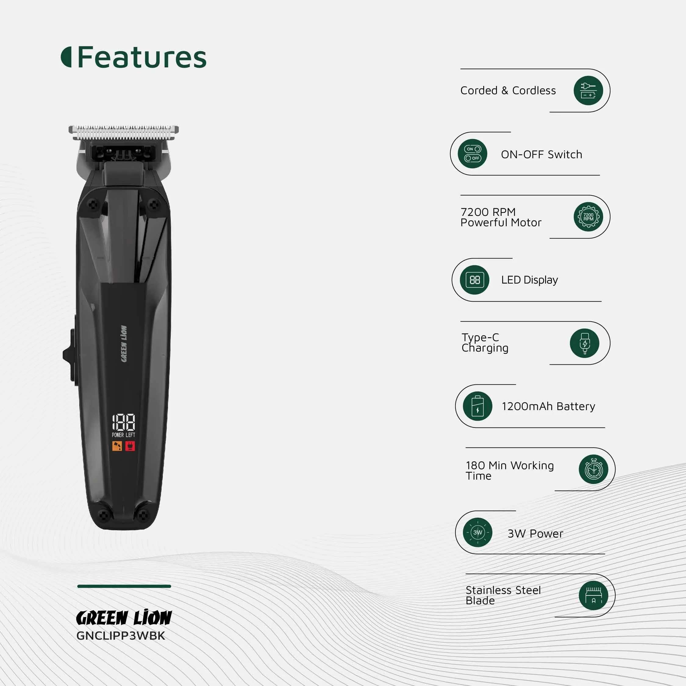ماشین اصلاح Green Lion Clip Master انتخابی قدرتمند و بادوام برای استفاده شخصی و حرفهای است و هر بار تجربهای ایدهآل از اصلاح را به شما هدیه میدهد.