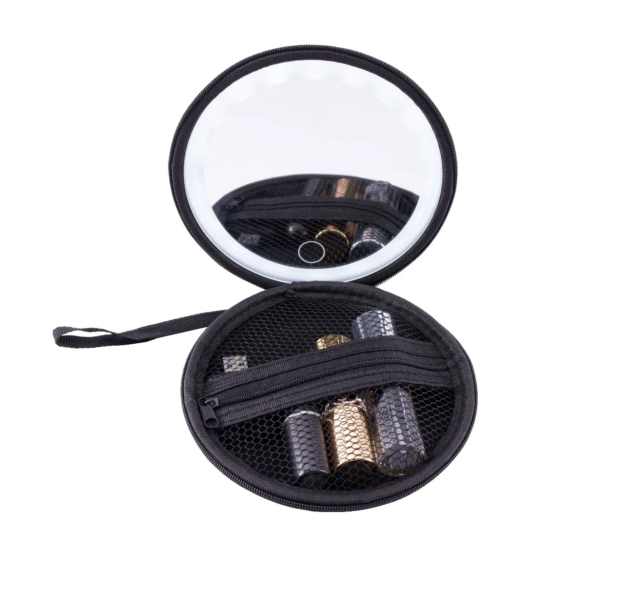درون این کیف یک آینه HD با وضوح بالا تعبیه شده که دقت در آرایش را آسان میکند. همچنین دارای سیستم نورپردازی داخلی با ۳۶ عدد چراغ LED پرنور است که نور کافی را در هر شرایطی فراهم میکند.