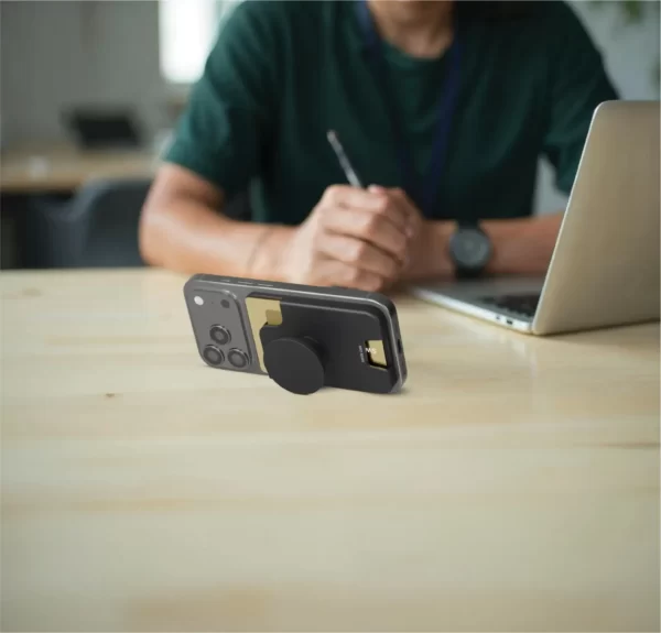 کیف W2 دارای پایه نگهدارنده است که دیدن محتوا را بهصورت هندزفری و در هر زاویهای ممکن میسازد؛ و دلیل آن وجود پاپگریپ ۳۶۰ درجه قابل تنظیم است.